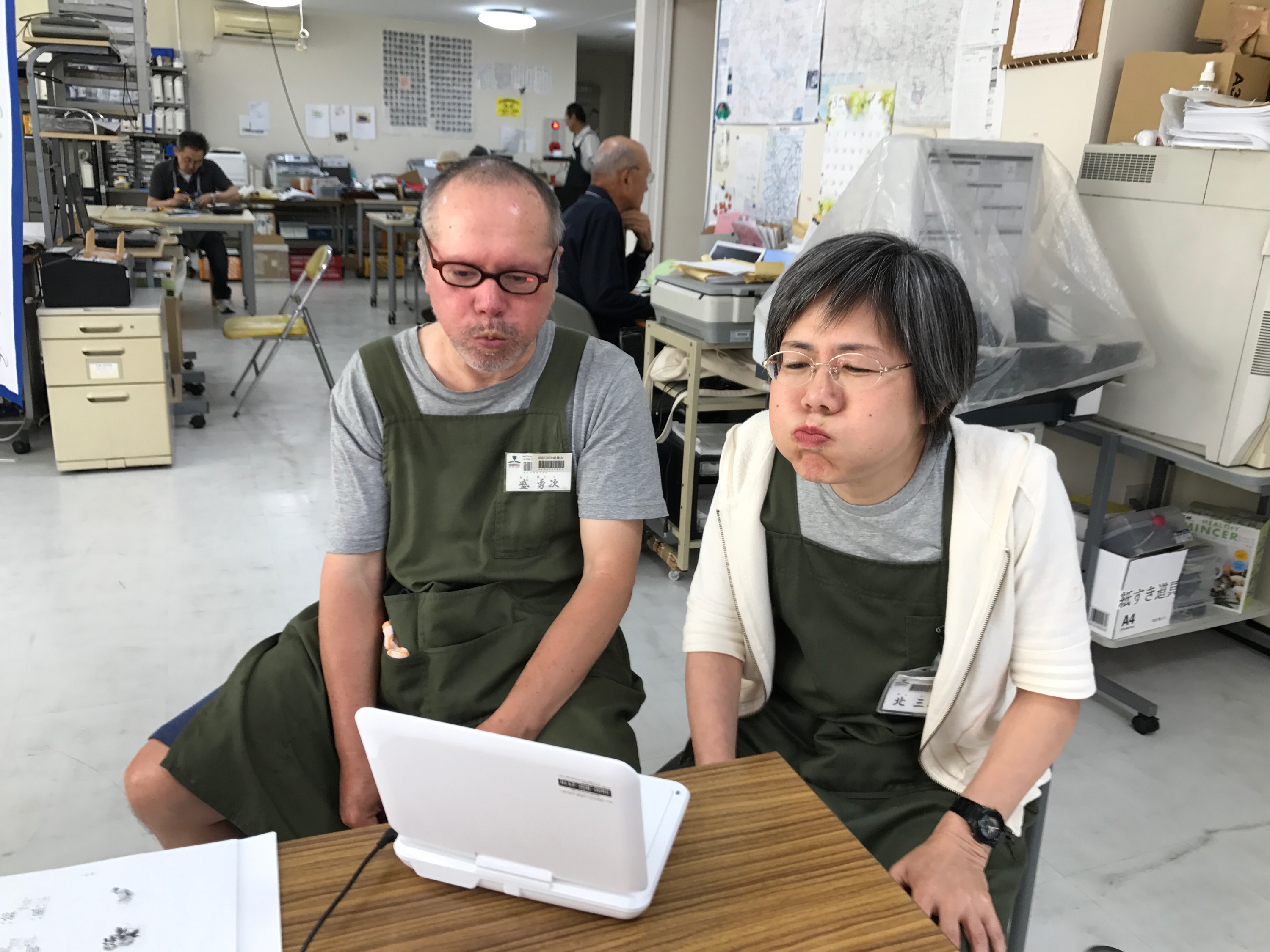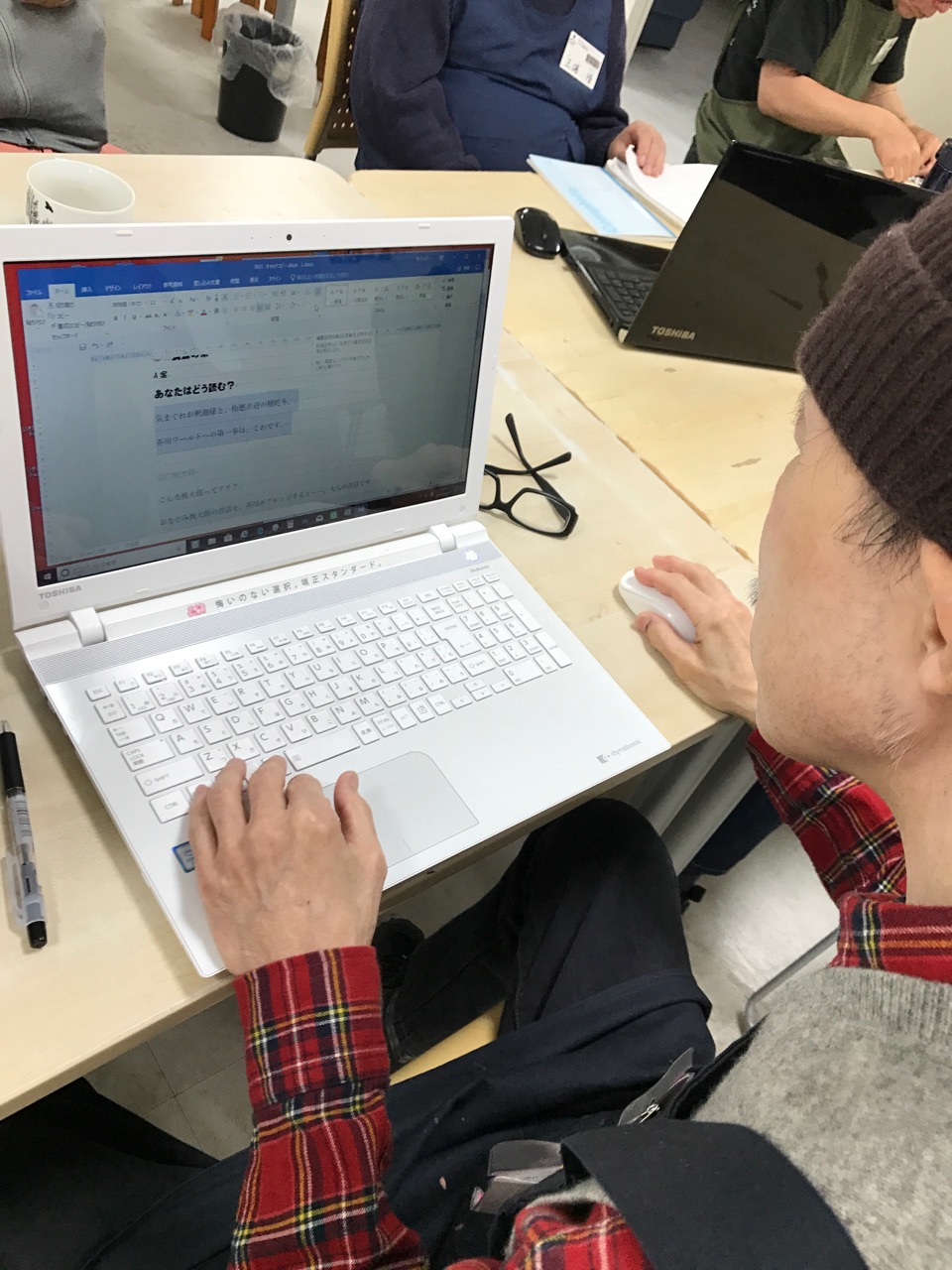 「パソコン工房ゆずりは」は失語症者が働く共同作業所です。脳血管障害などで失語症を中心とした高次脳機能障害と呼ばれる中途障害を負った方が数多く通っています。